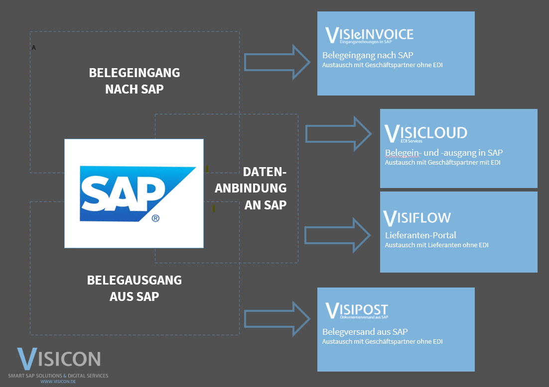 EDI ist das englische Kürzel für Electronic Data Interchange, oder auf Deutsch: Elektronischer Datenaustausch. Damit ist auch die Kernfunktion erklärt. A tauscht Daten mit B aus – kein Postweg, keine E-Mail keine nachträgliche Interpretation von Daten. Alles ist vom System lesbar und kann direkt verarbeitet werden. Vorausgesetzt A und B nutzen EDI. Große Unternehmen sind zum größten Teil EDI-fähig. Sollte man jedoch zum Beispiel einen hohen Austausch mit nicht EDI-fähigen Lieferanten, Kunden und Speditionen haben, kann man diesen mit digitalen Portalen, wie VISIflow, auch eine zusätzliche Plattform zur Dateneingabe bieten. Die dort getätigten Eingaben sind maschinenlesbar und werden anschließend automatisch in Ihr ERP System übertragen.